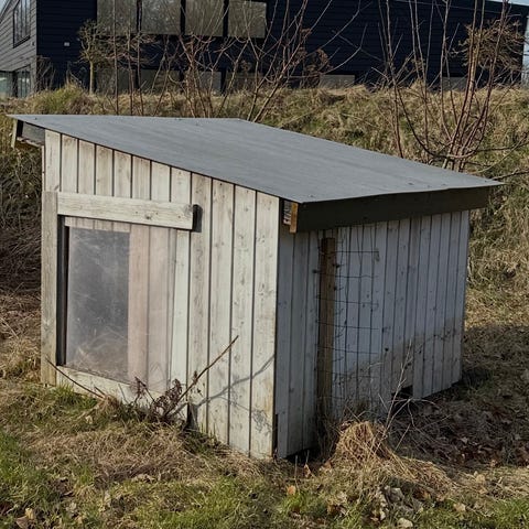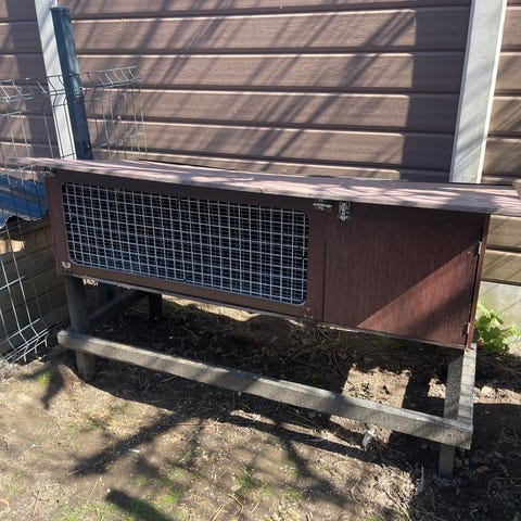Velegnet som hønse eller kanin hus. Man kan åbne en lille lem i siden til udgang.
