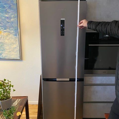 Bosch køle-fryseskab i stålfinish. Skabet har én dør og er indrettet med flere hylder og skuffer i frysedelen, som giver mulighed for organiseret opbevaring af frostvarer. Ydersiden er i rustfri stål-look med lodret håndtag og integreret display i døren. Velegnet til brug i køkken, bryggers eller kælder til opbevaring af dagligvarer og frostvarer.