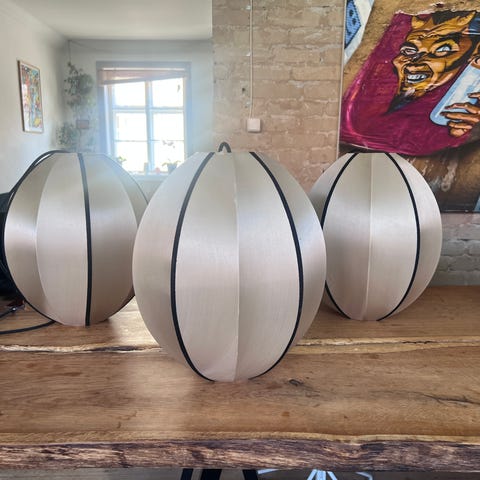 Flot sort loftlampe 60cm diameter i stof, med ca 4m rød stofledning og stor pærer, dekorativ og giver et flot lys