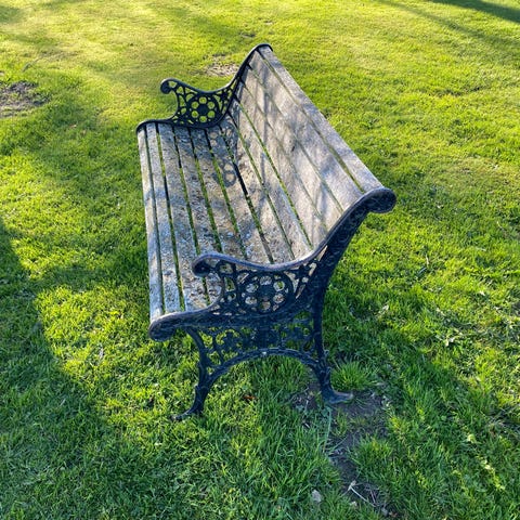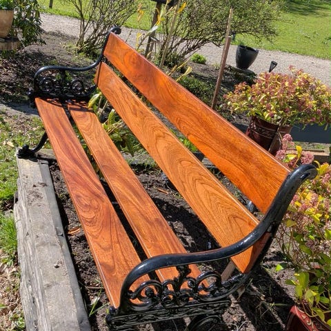 Gammel smuk havebænk træ og metal