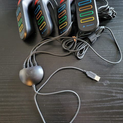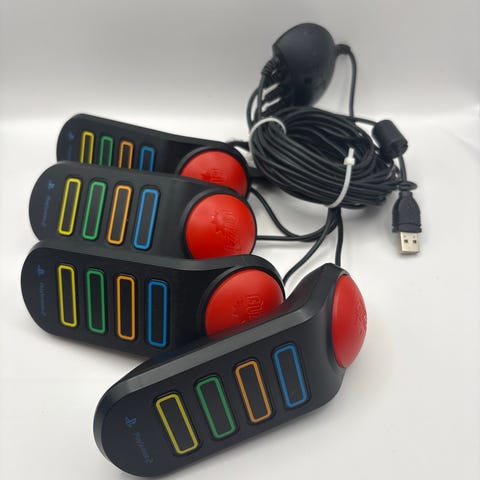 Sættet består af fire kablede Buzz-controllere med farvede knapper, der tilsluttes PlayStation 2-konsollen. Controllere er beregnet til quiz- og partyspil, hvor hver spiller har sin egen håndkontrol med trykknapper.