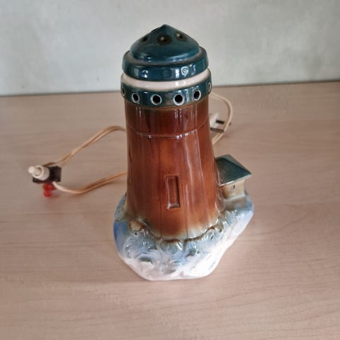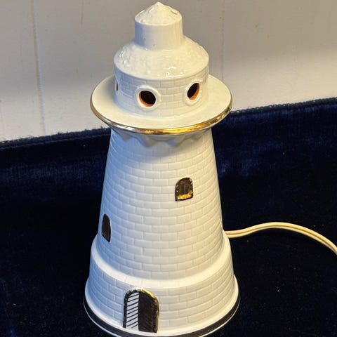 36. Rigtig fin ozon lampe i porcelæn af fyrtårn med fatning og pærer sælges for 250,00 kr. Den er 24 cm høj og har en diameter på 12,3 cm. Fremstår hel og fin uden afslag. Kan sende med GLS og DAO.