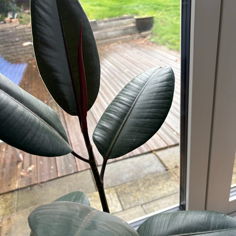 2 Gummitræ (Ficus elastica) stueplanter med store, grønne, blanke blade. Sælges pga pladsmangel i vindueskarmen. Planterne trives bedst på en lys placering uden direkte, skarp middagssol. Kan med tiden blive relativt høje og fyldige og er velegnet som grønne planter i stue, kontor eller andre opholdsrum. Disse to er lavet ud fra stiklinger og har også selv givet stiklinger til nye små gummitræer.