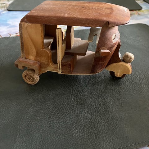 Træbil formel 1 model i naturfarvet træ. Bilen er udskåret med detaljer som hjul, cockpit og hækspoiler. Egnet som pynt, dekoration eller legetøj afhængigt af behov. Overfladen fremstår ubehandlet eller let behandlet, så træets struktur er synlig.
