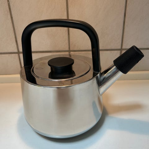 Sælger denne ikoniske fløjtekedel fra Alessi, designet af Richard Sapper i 1983. Kedlen er Alessi's første "design-objekt" til køkkenet og er verdenskendt for sin unikke fløjte i messing, der spiller to harmoniske toner, når vandet koger.