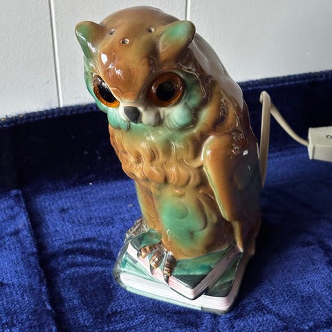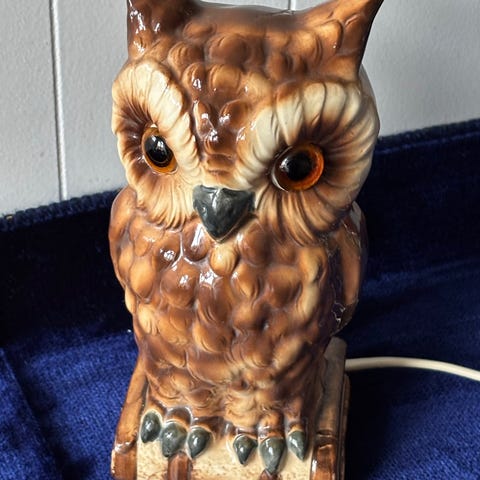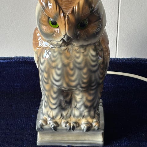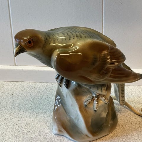 31. Rigtig fin ozon lampe i porcelæn af et par ugler med fatning og pærer sælges for 200,00 kr. Den er 16 cm høj, 12 cm lang og 10 cm bred. Fremstår hel og fin uden afslag. Kan sende med GLS og DAO.