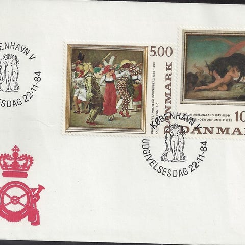Konvolutten markerer udgivelsen af frimærker med værker af den danske maler Peter Hansen, specifikt "Badende drenge" (1902) og "Efterår i pløjemarken".