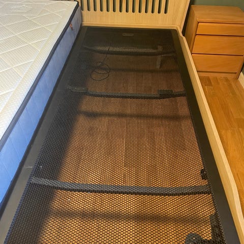 Små brugstegn. Fin stand. Designet til Auping sengestel, hvor sidebordet skrues på. Smuk dueblå.