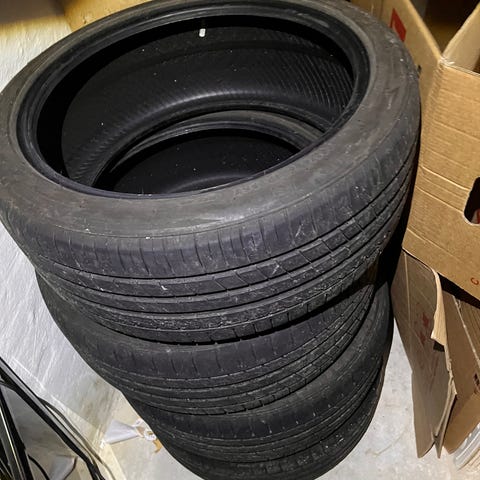 4 sommerdæk som har kørt 10.000 km inden de blev skiftet. Stadig massere af kilometer tilbage i dem. Klar på hurtig handel. Forestiller mig 2000,- vil være en mere end fair pris.