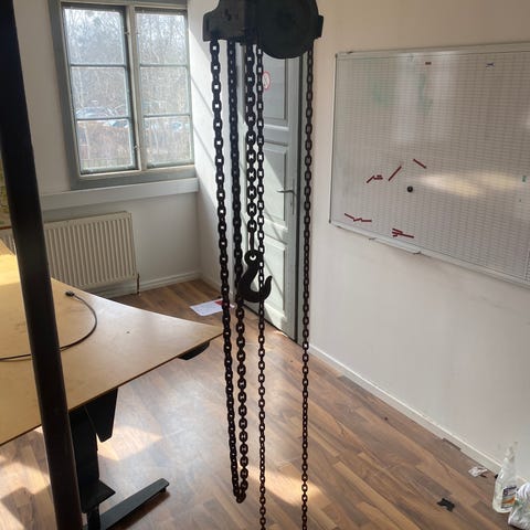 Stahl eltalje med løbekat, inkl div beslag, dragebånd ect.