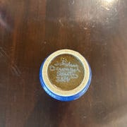 Blå og hvid vase med gulddetaljer