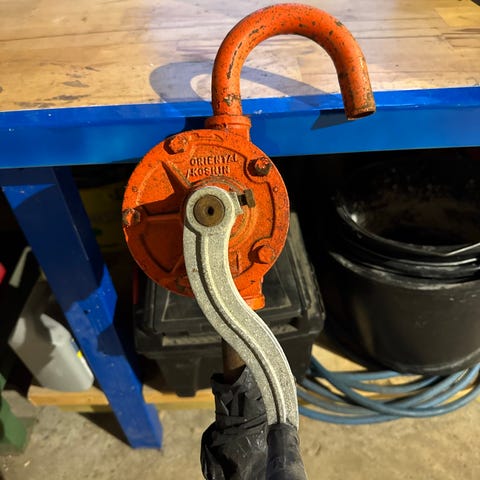 Hamag håndpumpe til tønde i orange metal. Mekanisk pumpe med håndsving og lang suge-/trykstang, egnet til påfyldning eller tømning af væsker fra tønder eller tanke. Pumpehuset er udført i metal og er manuelt betjent uden strømtilslutning. Velegnet til brug i værksted, landbrug eller lignende, hvor der er behov for håndtering af olie, brændstof eller andre kompatible væsker fra beholdere.2 stk til 200 liter tromle. Og en til 60 liter. Sælges samlet