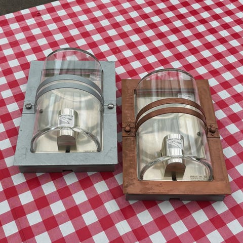 2 stk udendørs kobber væglamper fra Konstsmide Fenix, Kobber er et materiale som patinerer udendørs