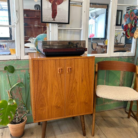 Står med 5 skuffer samt skab - skufferne med egetræ i bunden