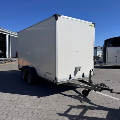 Trailer med nyere aksler med bremser, samt 5 nye alufælge med nye dæk. Skærme er også som nye. Vanger er rustne så den kan ikke synes. Skift selv vanger eller køb aksler og hjul. Indvendigt mål mellem vanger er 156 cm. Nye aksler koster ca 6500 pr stk, alufælge og nye dæk er vel 8000 kr. Næsehjul 1000 kr. Så det er ialt ca 21000 kr. Hent det hele for 7000 kr eller giv et bud. BEMÆRK DEN KAN IKKE SYNES MED DE RUSTNE VANGER.
