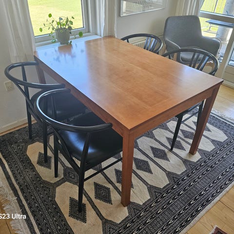 3,7 cm tyk bordplade, opbygget af følgende lag: mdf, krydsfiner, mdf, birkefiner.