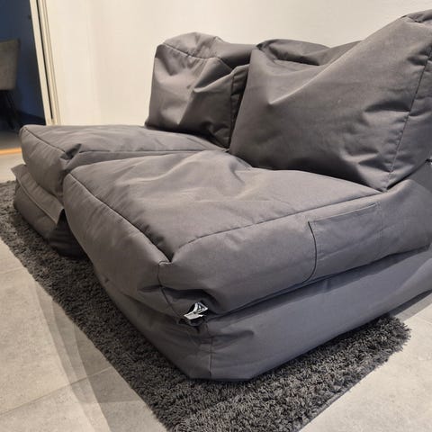 Tilhørende puf dog en en mørkegrå. Aldrig brugt, stadig emballage H32/Ø60 cm pris 450kr.