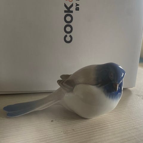Glasfigur måge hvid grå sort