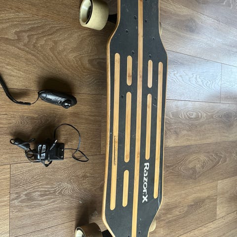 Sjovt elektrisk longboard med Faxe Kondi design sælges.