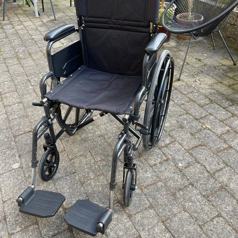 Kørestol med store baghjul og håndfælge. Modellen fremstår som en manuel, sammenklappelig kørestol egnet til indendørs og udendørs brug. Sæde og ryg er polstrede, og stolen har aftagelige fodstøtter samt skubbehåndtag bagtil. Stor indkøbs taske bag på. Velegnet til persontransport i hverdagen, eksempelvis i hjemmet, på institution eller til ture udendørs på jævnt underlag.