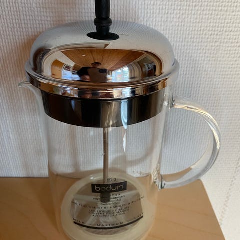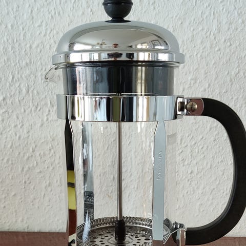 Bodum Original stempelkande i glas 1 L med sort plastlåg og -håndtag. Kanden har integreret stempel med metalfilter og fjederkant, som holder kaffegrumsen nede under brygning. Velegnet til brygning af stempelkaffe direkte i kanden og kan bruges både til hverdag og til servering ved bordet.