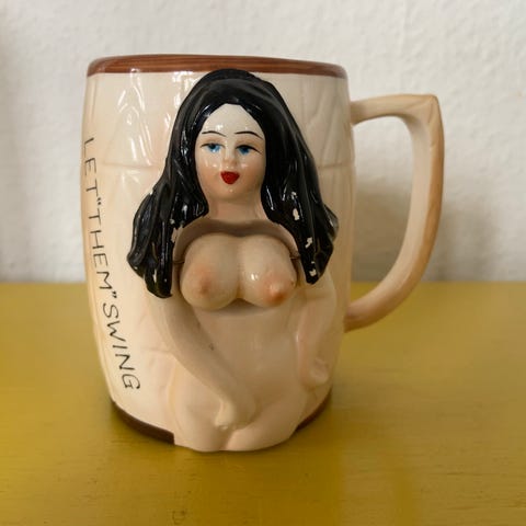 KÆMPE antik 2 super flotte “antikke” romantiske og MEGA store danske krus fra kendte Knabstrup Keramik fra Landmands Serien og skønt håndmalede Grisebasser - Måler H: 10.5 og D: i bunden hele 11.5 cm - God vægt med stykvis 563-565 gram