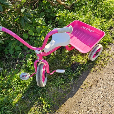 Elsket og godt brugt pige 3-hjulet cykel. Ladet virker.