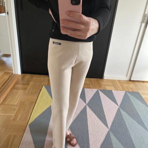 Hvide sommerbukser med lommer, elastik i taljen. Størelsen xs, men er større i str. Taljen 35x2, længden 103cm.