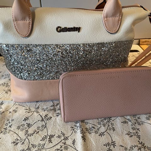 Fineste lille cross body taske i rosa ruskind. Flere små rum i. Nypris 700 DKR.