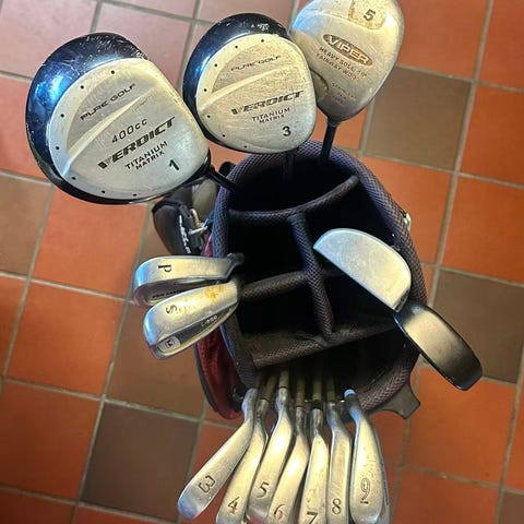 Køllerne er brugte og har almindelige brugsspor, men fungerer som de skal og er klar til spil. Perfekt til dig, der er ny i golf eller ønsker et fint sæt til en god pris.