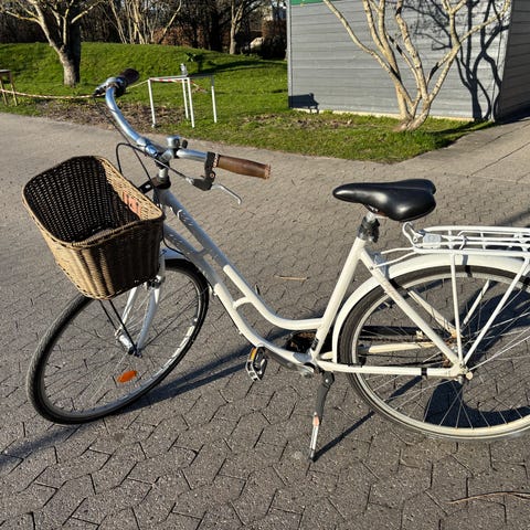 Mustang citybike i unisex-model med lav indstigning. Cyklen har 28" hjul og en stelstørrelse, der svarer til large. Den er udstyret med kurv foran og bagpå samt støtteben og skærme. Velegnet som hverdagscykel til bykørsel og transport af mindre bagage i kurvene.