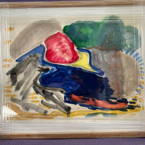 Billedramme med abstrakt kunstmotiv i lyse farver.