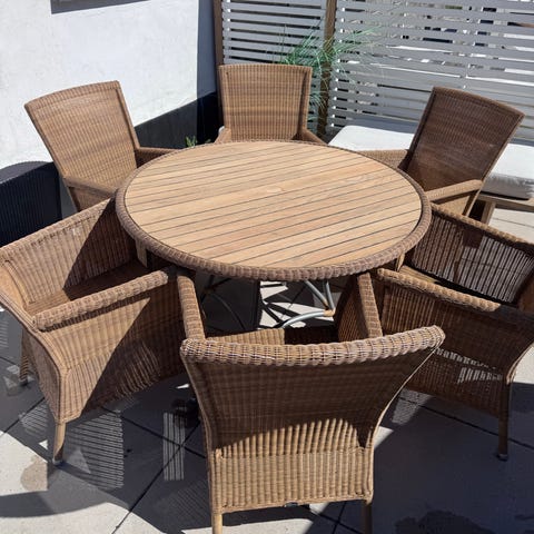 Sælger dette fine trip trap havemøbelsæt i teaktræ.