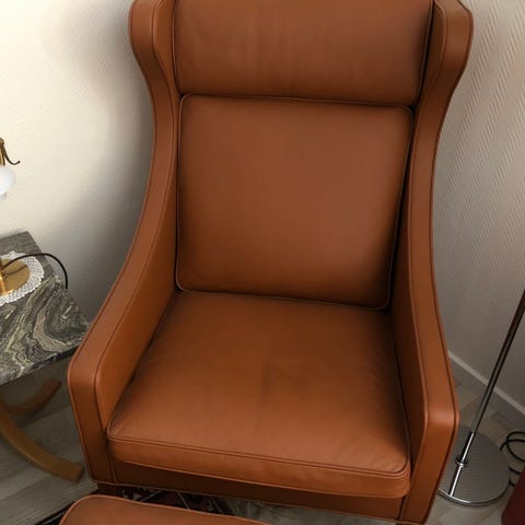 Børge Mogensen 2 stole Øreklapstol med fodskammel og en 3 personer sofa favre India red. Sælges kun samlet