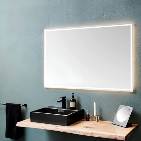 Firkantet flot spejl med lysfelt du kan justere, tænde og slukke via 3 touch-knapper som er indbygget i spejlet. Du kan justere lysfarven fra varm til kold, samt regulere lysstyrken.