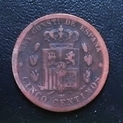 Vesteuropa Mønter SPANIEN SPAIN ESPANA DIEZ 10 CENTIMOS 1870