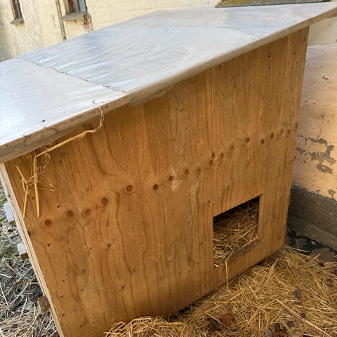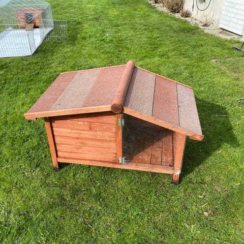 Stort hundehus med isolerings måtte i bunden. Trænger til vask og olie. Ny pris 5000kr