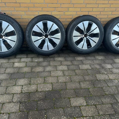 19” originale Mercedes EQB alufælge med Bridgestone vinterdæk Fra 2024 i str 235/55-19 helevejen rundt med 8mm mønster kørt 1000km og originale TPMS ventiler.