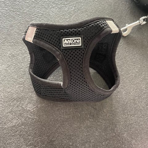 AniOne sele til hund i sort mesh-materiale. Selen er angivet til en omkreds på 36-44 cm og er velegnet til mindre hunde inden for dette målemål. Den er fremstillet i åndbart netmateriale med blød inderside for øget komfort. Selen har justerbar rem og metalring til fastgørelse af line. Reflekterende detaljer på siderne øger synligheden i svag belysning.