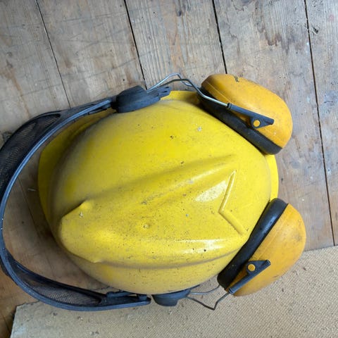 Stihl Forest Wear skovhjelm med integreret netvisir og høreværn. Hjelmen er i kraftig solid orange plast med sort skygge og metalnet-visir, der kan vippes op og ned. Justerbart indvendigt seletøj for tilpasning til hovedstørrelse. Høreværn er monteret på siden og kan slås op og ned efter behov. Velegnet til skov- og havearbejde i sommerhuset f.eks. ved brug af motorsav eller buskrydder, hvor der er behov for hoved-, ansigts- og høreværn.
