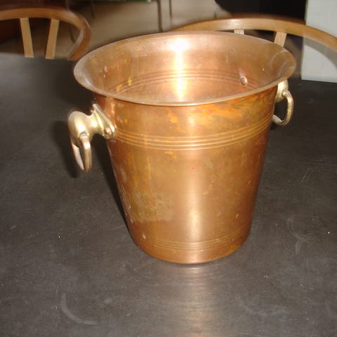 Gammel champagnekøler i kobber , med messing ( håndtag) - højde 19.5 cm diam foroven 21 cm & vægt 1100 gr.
