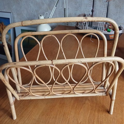 Mål: 43 cm i bredden, 25 cm i dybden og 31 cm i højden på selve holderen samt 45 cm i højden med håndtaget.