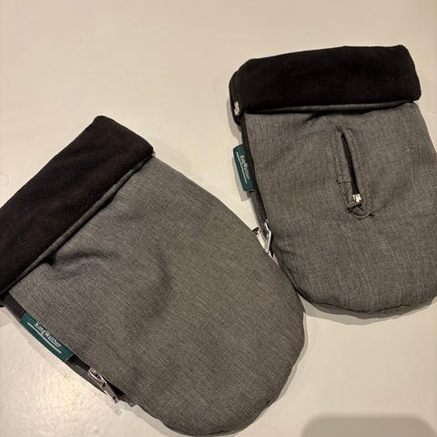 Kong Walther barnevognshandsker i sort. Brugt meget sparsomt, så fremstår som nye.. Nypris 299,-