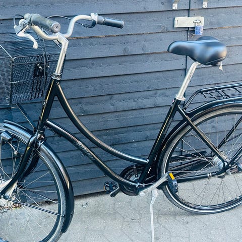 Dynamo, støtteben, cykelkurv, godkendt lås.