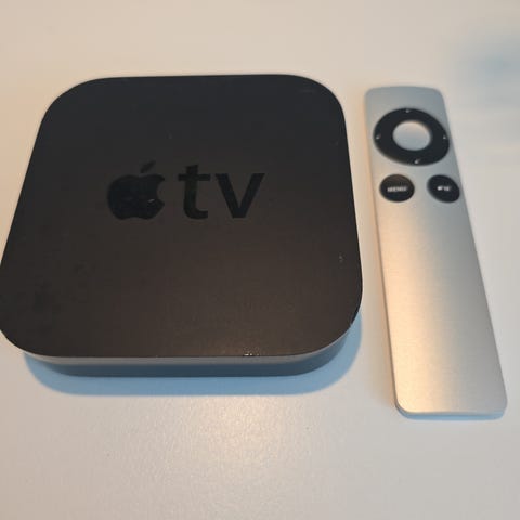 Apple TV med fjernbetjening og strømkabel
