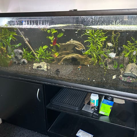 Akvariet er brugt og der er nogle brugsspor men det er i ok stand