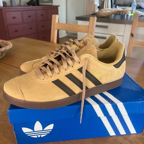 Adidas Gazelle sneakers i str. 40. Modellen er i blå ruskind med lyserøde striber og detaljer samt gummisål i naturfarve. Klassisk lav sneaker med snørelukning og tekstilfor. Velegnet til hverdagsbrug.