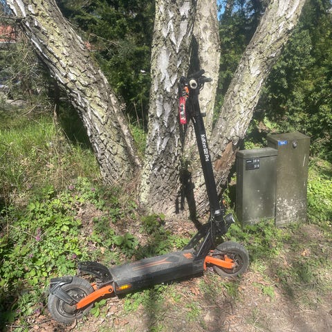 Freebike elektrisk løbehjul med sæde i sort. Modellen har kraftige dæk og skivebremser for og bag. Der er monteret højdejusterbart sæde samt fodplade i træ. Batteripakken er placeret i stellet under fodpladen. Løbehjulet er udstyret med styr med håndtag og bremsegreb samt støtteben bagpå. Velegnet som el-løbehjul til kørsel på faste underlag, hvor der er behov for siddemulighed og god stabilitet.