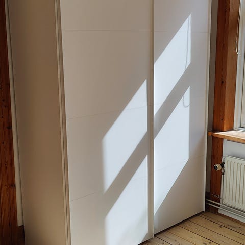 Indbygget skab med 3 skydedøre i rigtig godt kvalitet og med masser af plads.