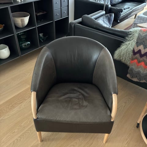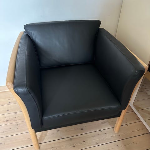Tremmestol i lys eg med ægte læderhynder